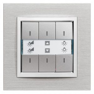 Les interrupteurs KNX Gallery sont disponibles avec 2, 4 ou 6 bouton et avec ou sans LED. Ils intègrent une sonde de température ambiante. L’espace central peut accueillir une étiquette indiquant le fonctionnement de chaque bouton. Les enjoliveurs pour boutons sont disponible en coloris blanc, dune, noir ou gris. De nombreux coloris et matières sont disponibles pour le cadre.