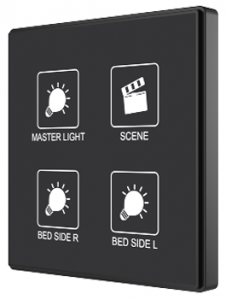 Les fonctions de pilotage des éclairages KNX sur les interrupteurs et les écrans tactiles sont personnalisées en fonction de chaque logement. Les boutons poussoirs et touches peuvent être programmées pour piloter chaque éclairage séparément, pour piloter un groupe d’éclairage ou pour les piloter en scénario (par exemple : éteindre tous les éclairages lors du départ). Il est aussi possible de prévoir une valeur préférée pour les éclairages à variation (par exemple : allumage à 10% pour la nuit…).