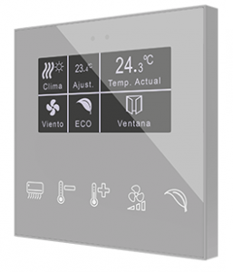 Le Square TMD est un thermostat tactile capacitif avec une sonde de température, la fonction thermostatique (régulation PI) et 5 boutons. L’interrupteur est disponible en anthracite, argent, blanc ou personnalisé (icones et couleur de fond). La version TMD inclus des LED et la version flat inclus un capteur de proximité qui adapte la luminosité des icônes rétroéclairées à la présence et la luminosité ambiante.